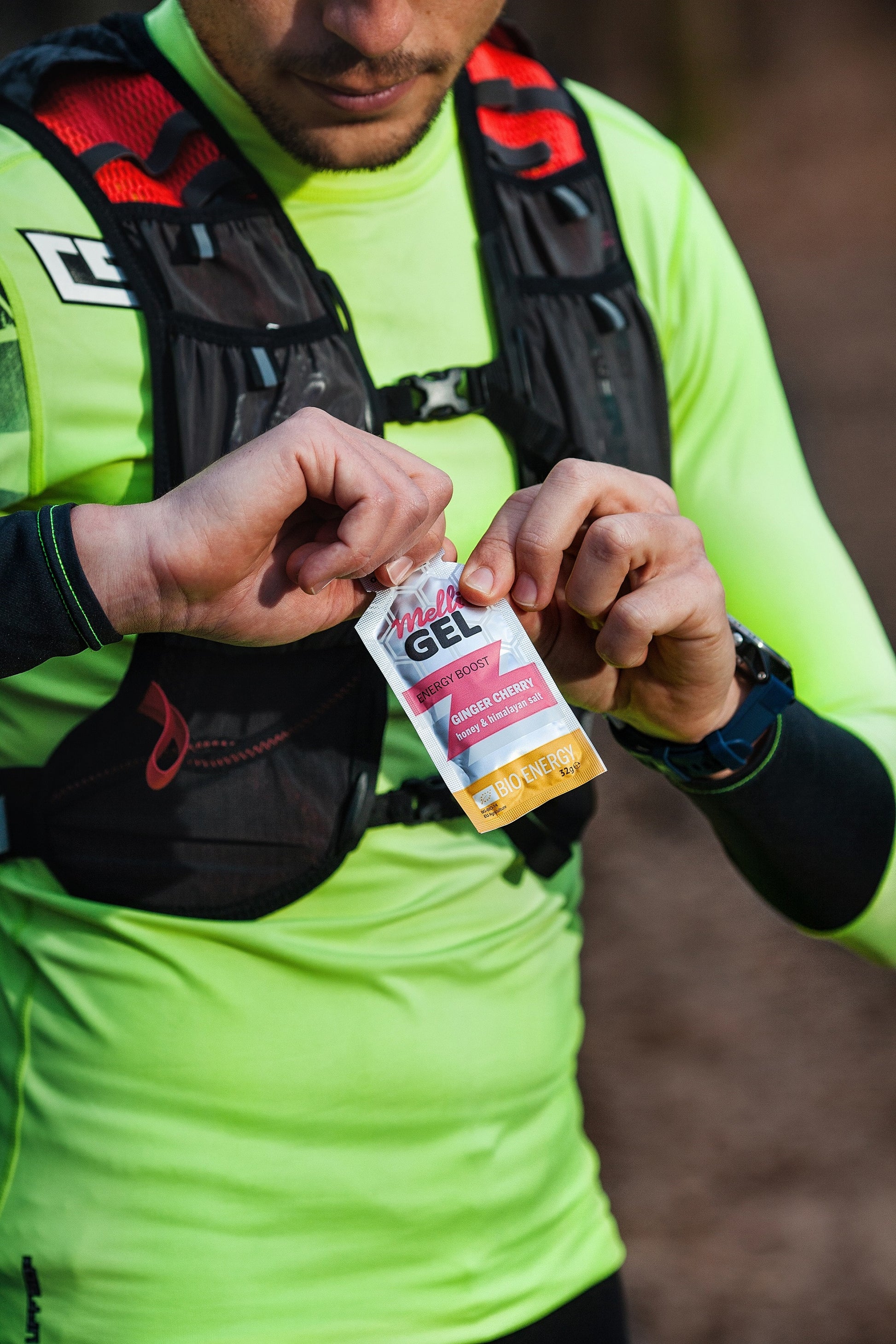 The MelliGel energy gels blend organic honey with superfoods and herbs. You get the energy boost and tons of more benefits from Ginger Cherry, Cordyceps and Himalayan salt.